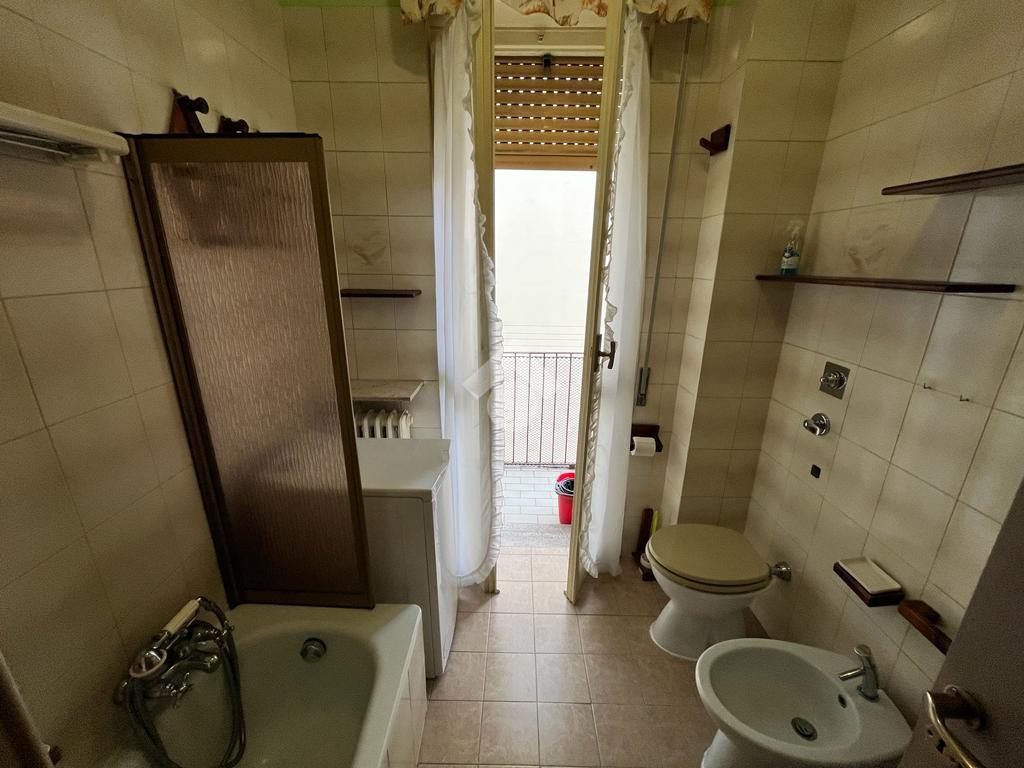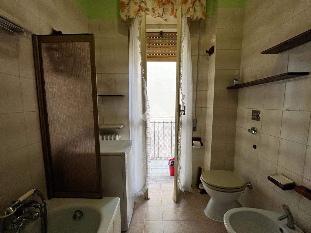 Il bagno finestrato è dotato di vasca e si affaccia sul balcone collegato a quello della cucina, offrendo grande praticità.