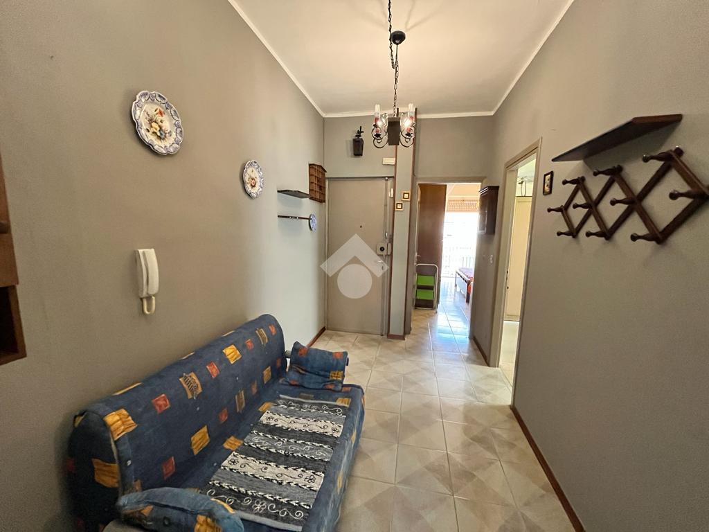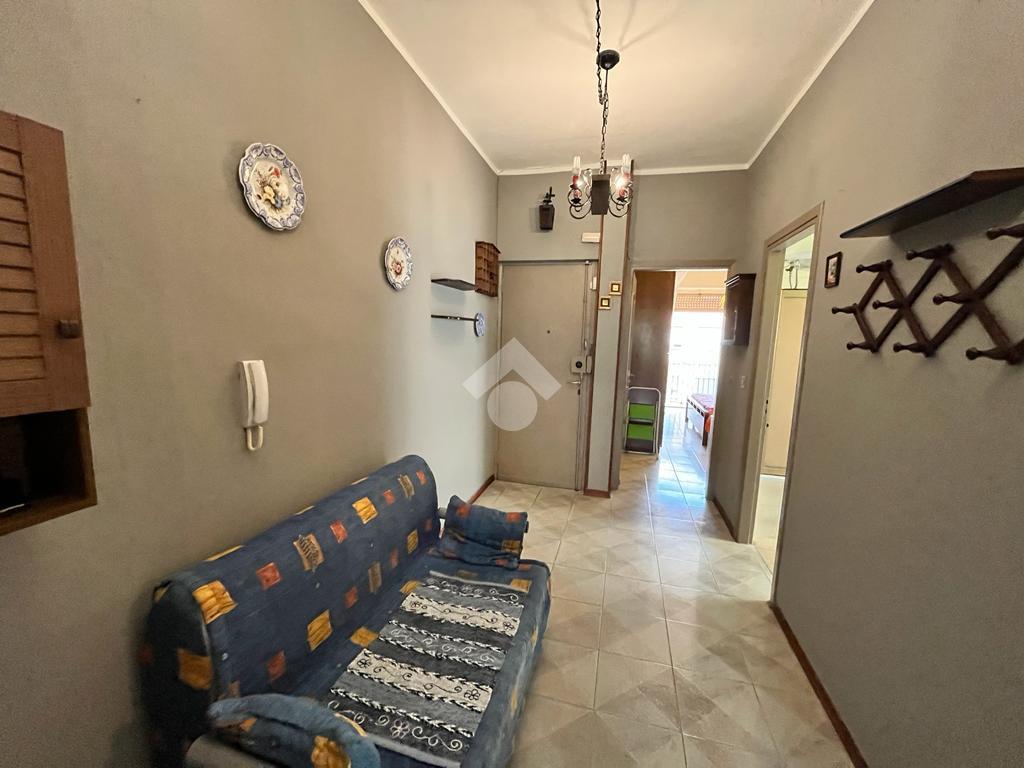 L'ingresso accoglie con un ampio disimpegno che conduce alla cucina abitabile con accesso diretto al balcone, comunicante con quello del bagno.