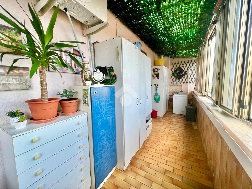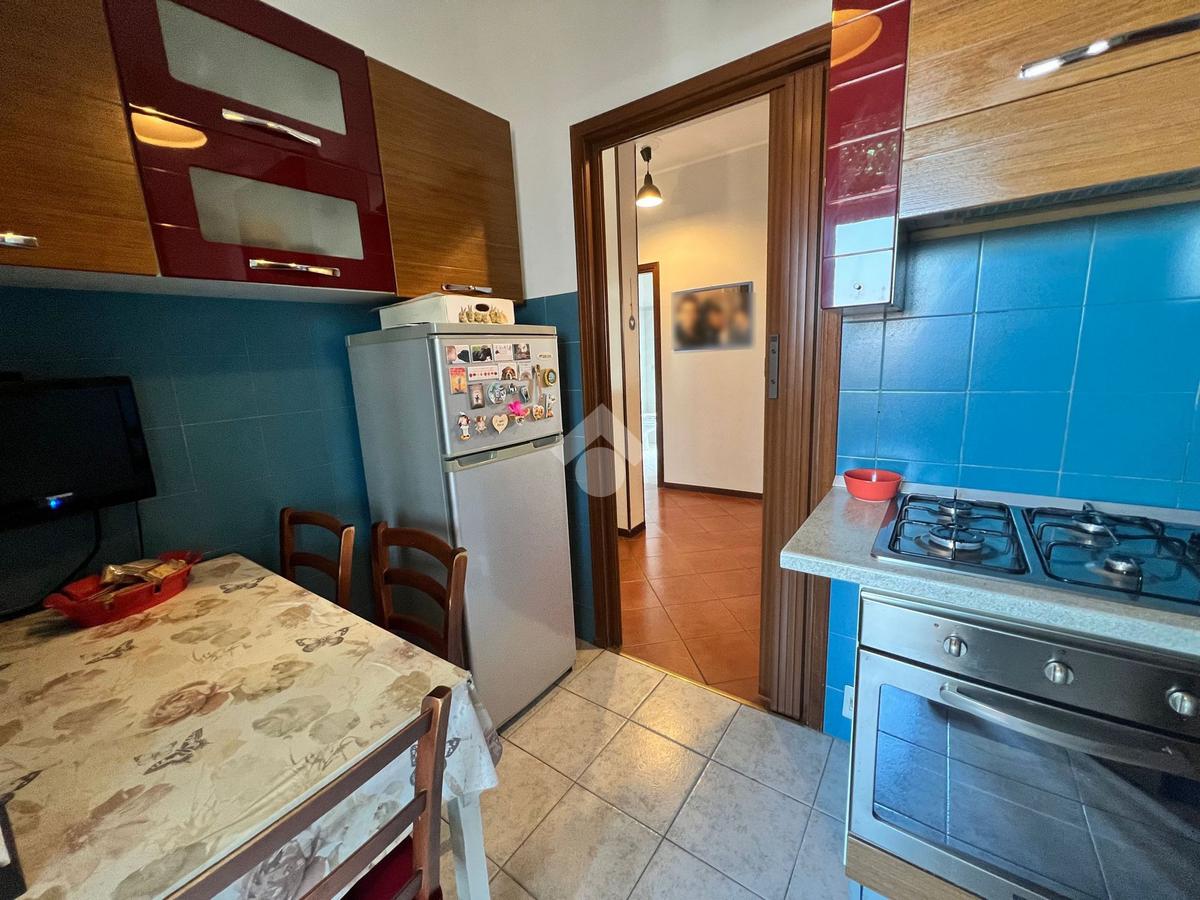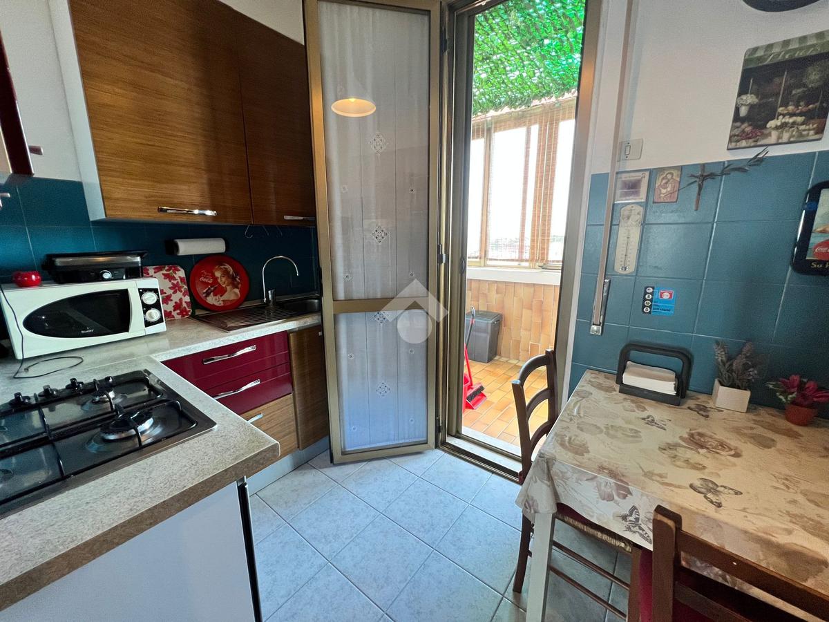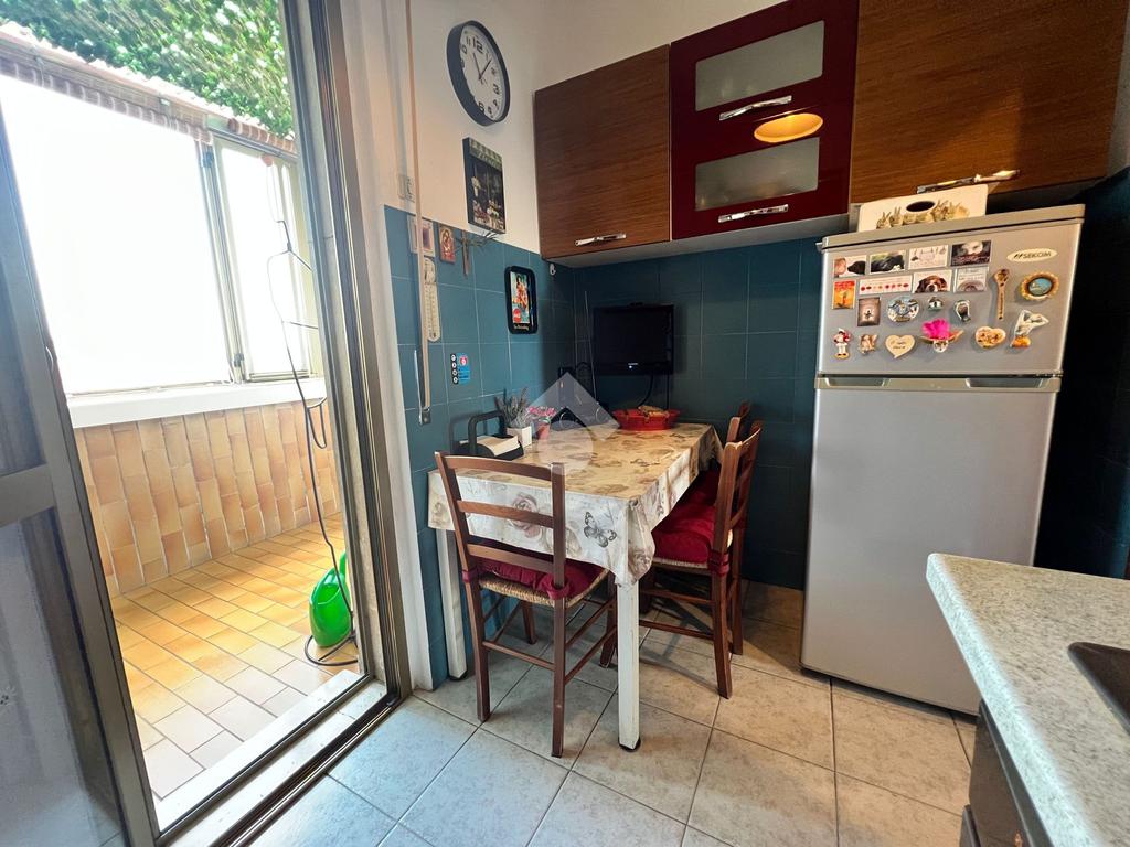 La cucina è abitabile con accesso al terrazzo. Sul disimpegno è presente l'armadio a muro, utilizzabile anche come ripostiglio.