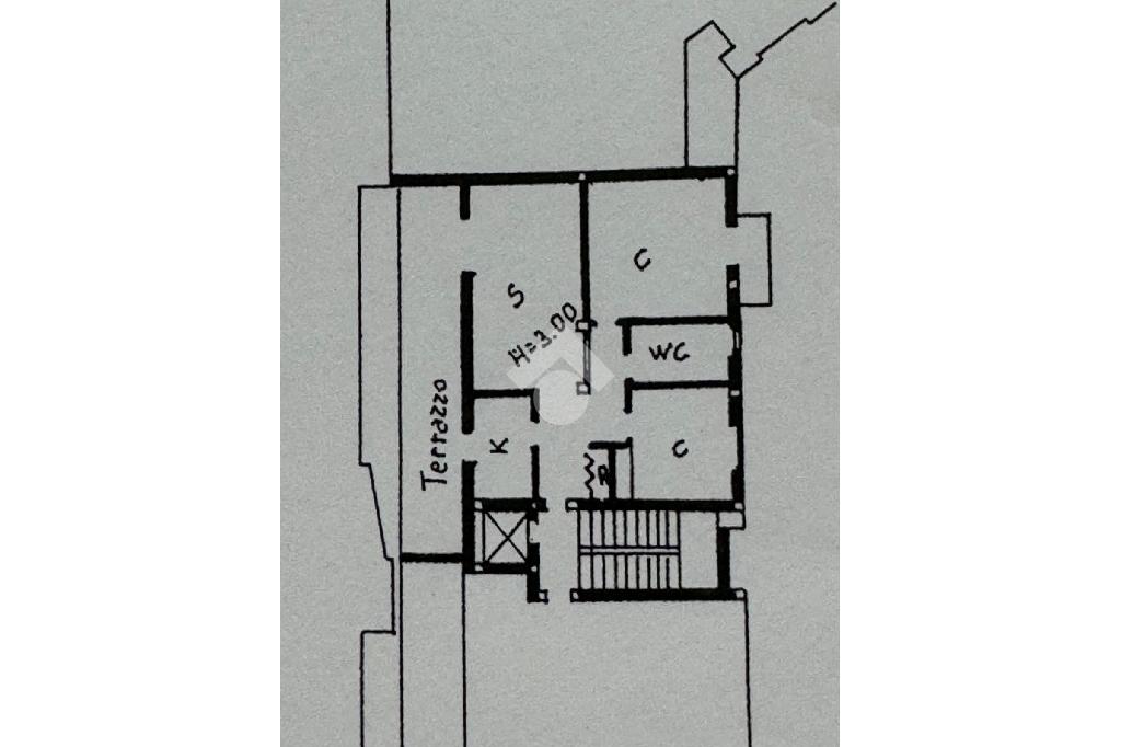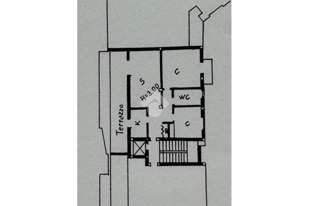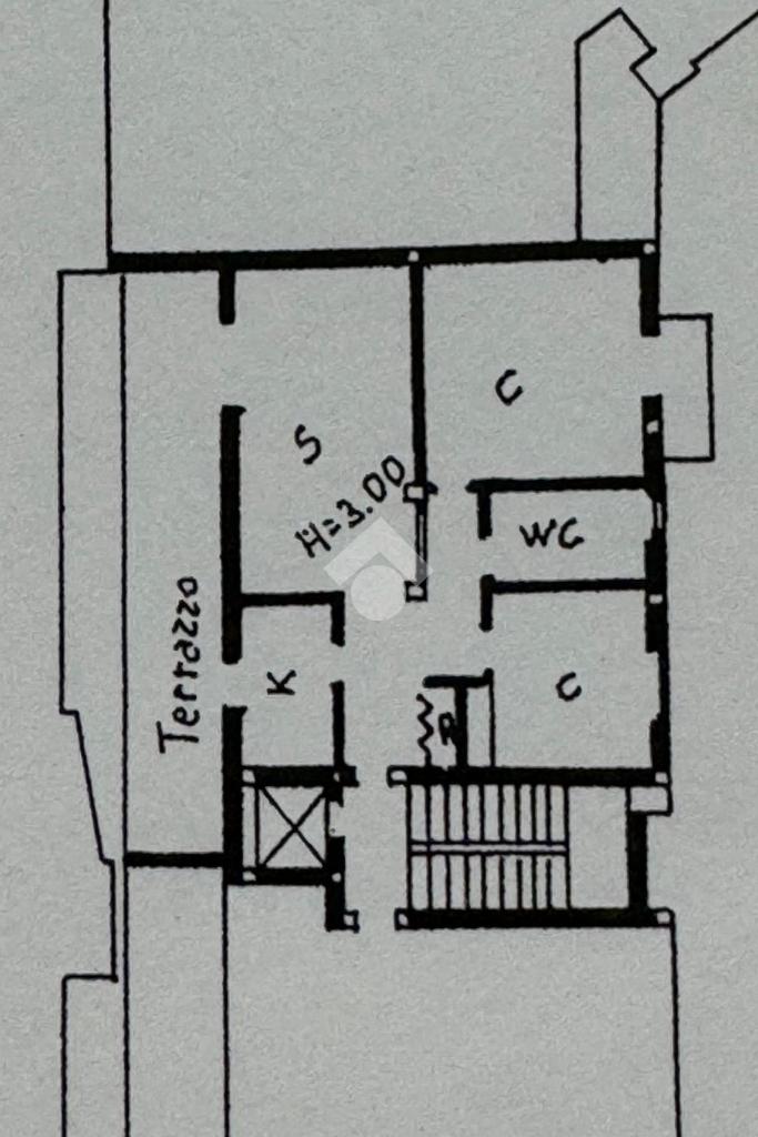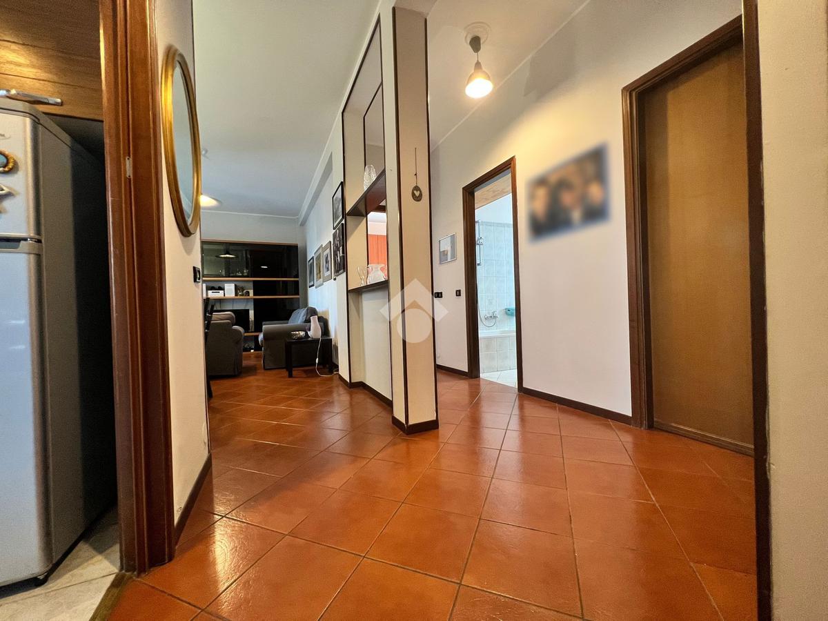 La cucina è abitabile con accesso al terrazzo. Sul disimpegno è presente l'armadio a muro, utilizzabile anche come ripostiglio.