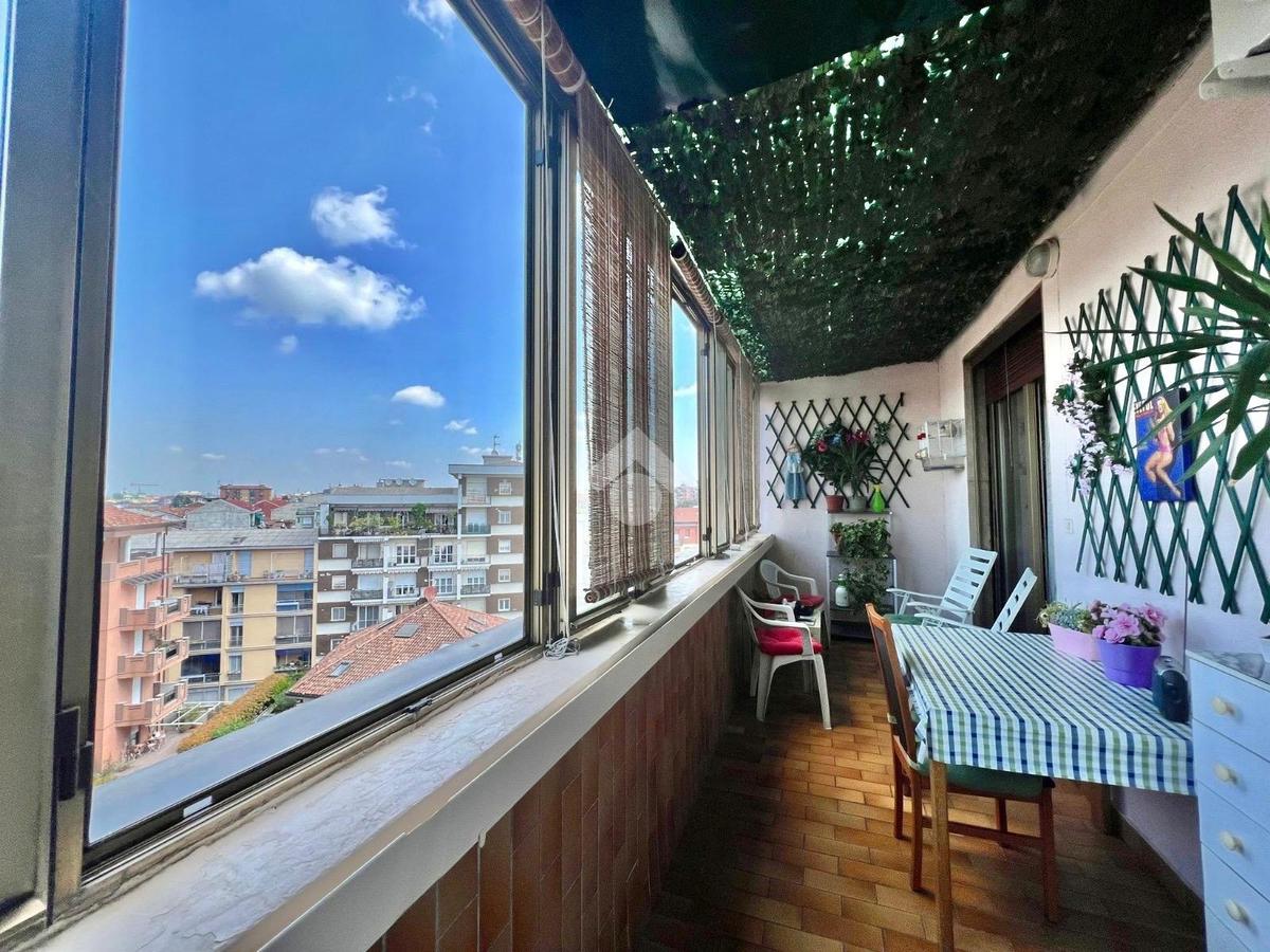 L'appartamento è così composto: ingresso sul disimpegno che porta alla zona giorno caratterizzata dall'ampia sala, illuminata dall'esposizione che si affaccia sul caratteristico terrazzo verandato con vetrate isolanti e vista panoramica sulla città e sulla nota Cupola di San Gaudenzio.