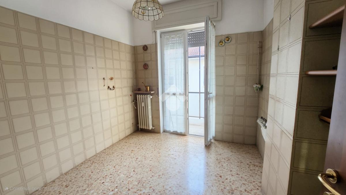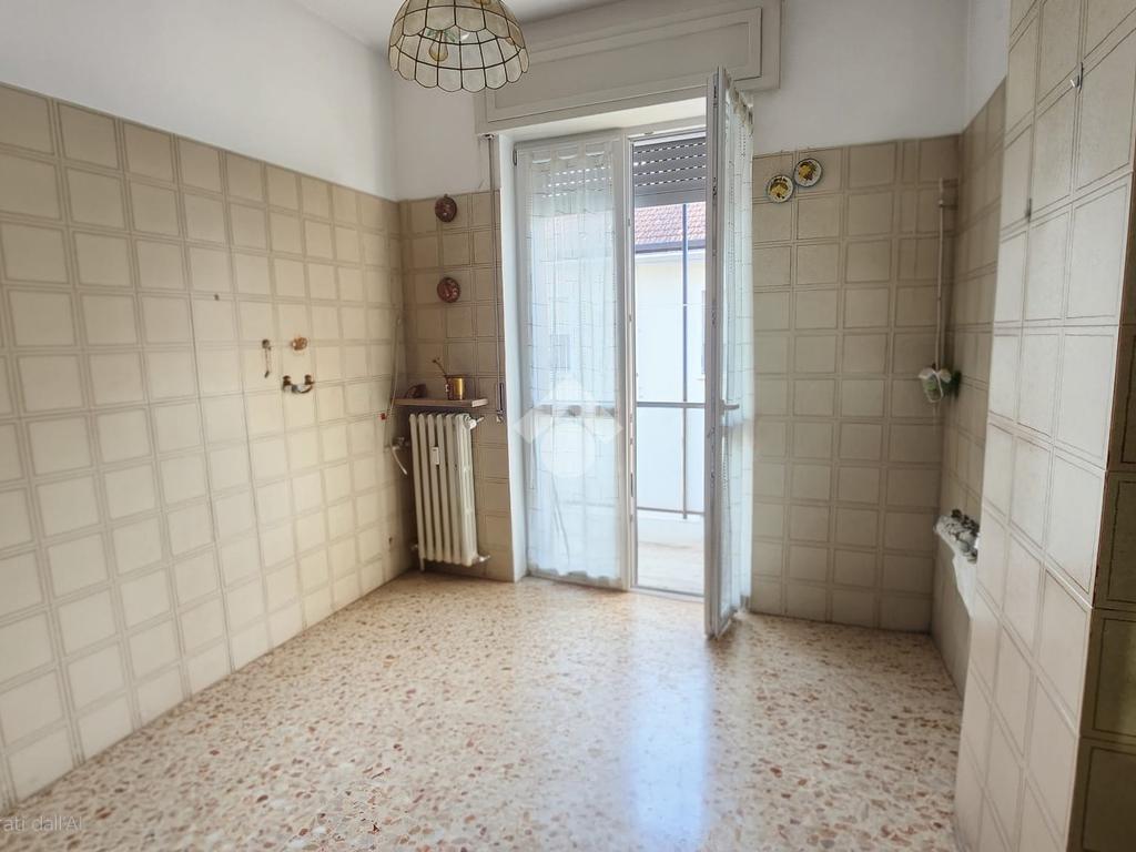 La cucina è abitabile e anch'essa si apre sul balcone, rendendo l'ambiente pratico e particolarmente vivibile.