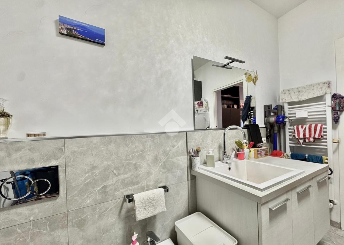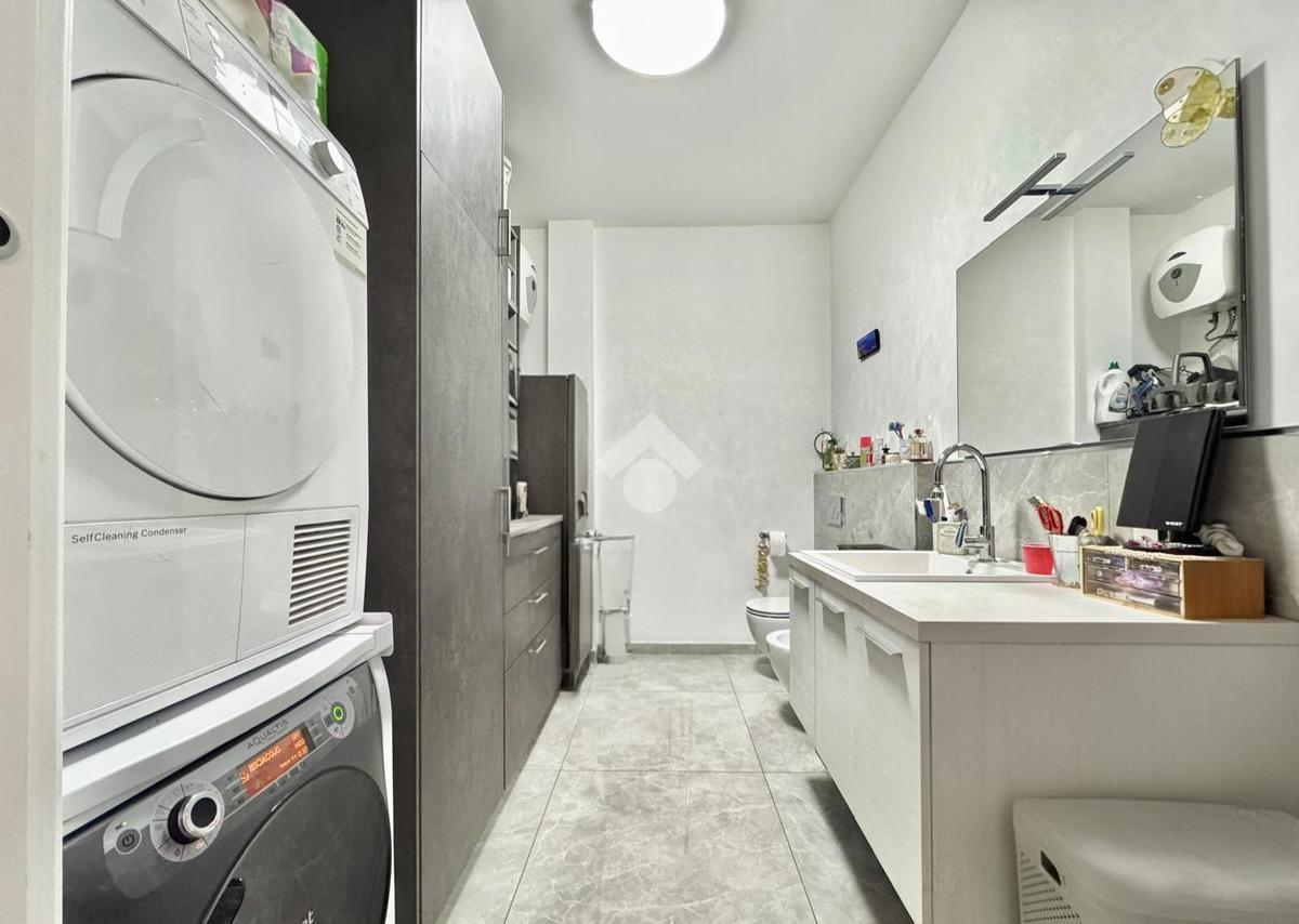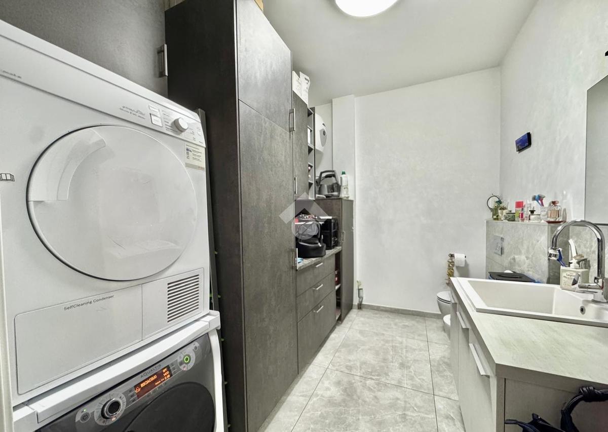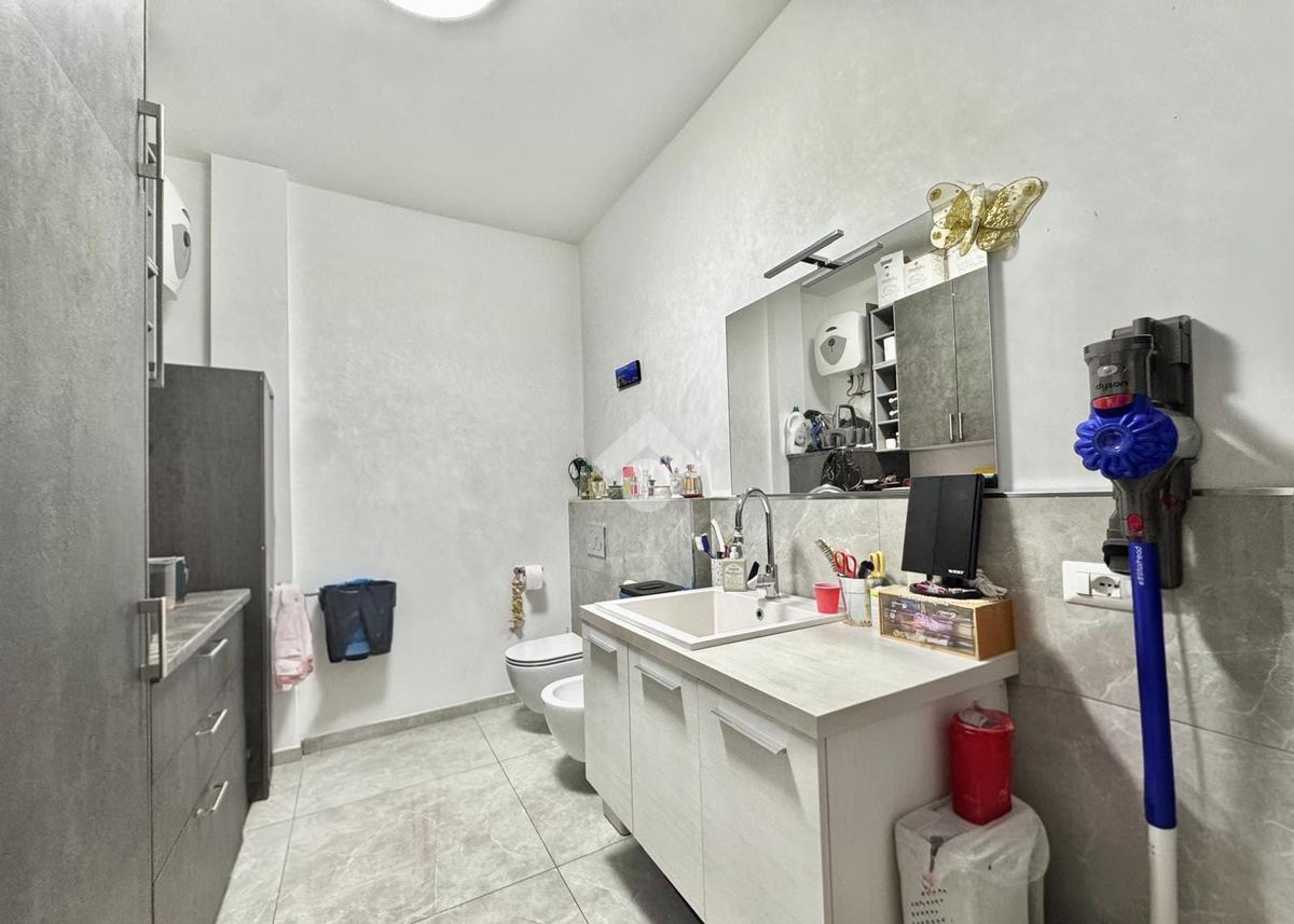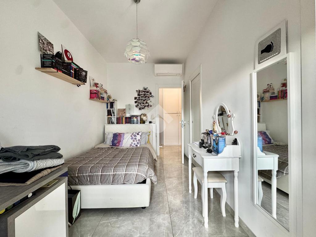 Dallo stesso disimpegno si accede a un bagno attualmente utilizzato anche come lavanderia, pratico e ben organizzato. Un secondo ambiente, oggi adibito a soggiorno, offre grande versatilità e può facilmente diventare una camera da letto, uno studio o una zona relax, anch’esso con affaccio sul balcone.