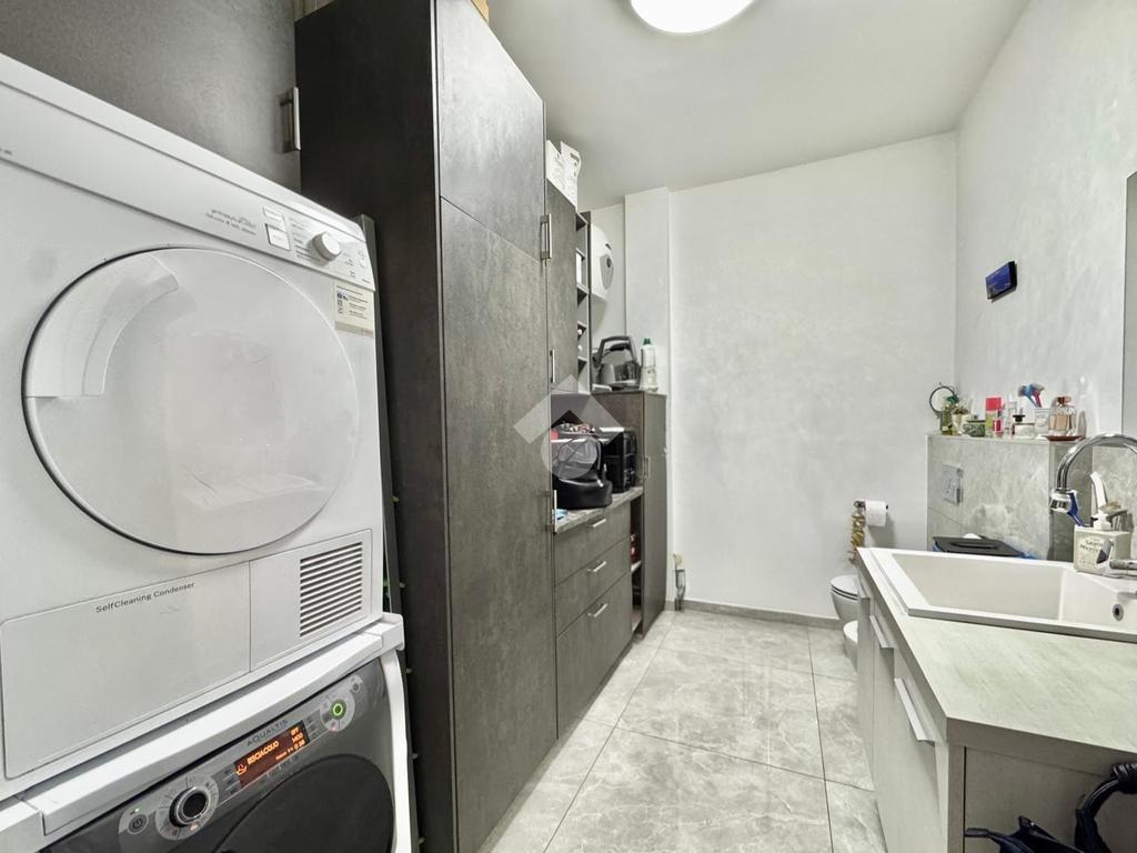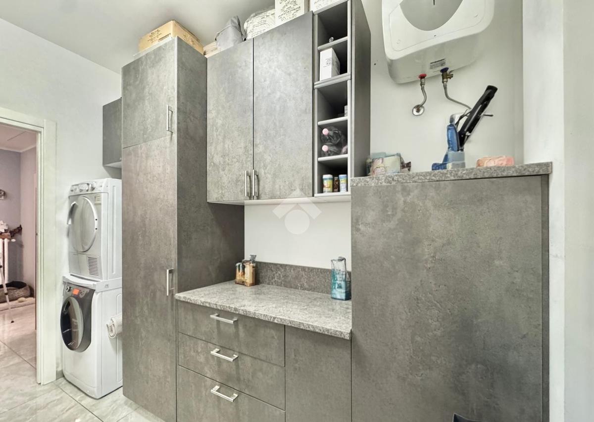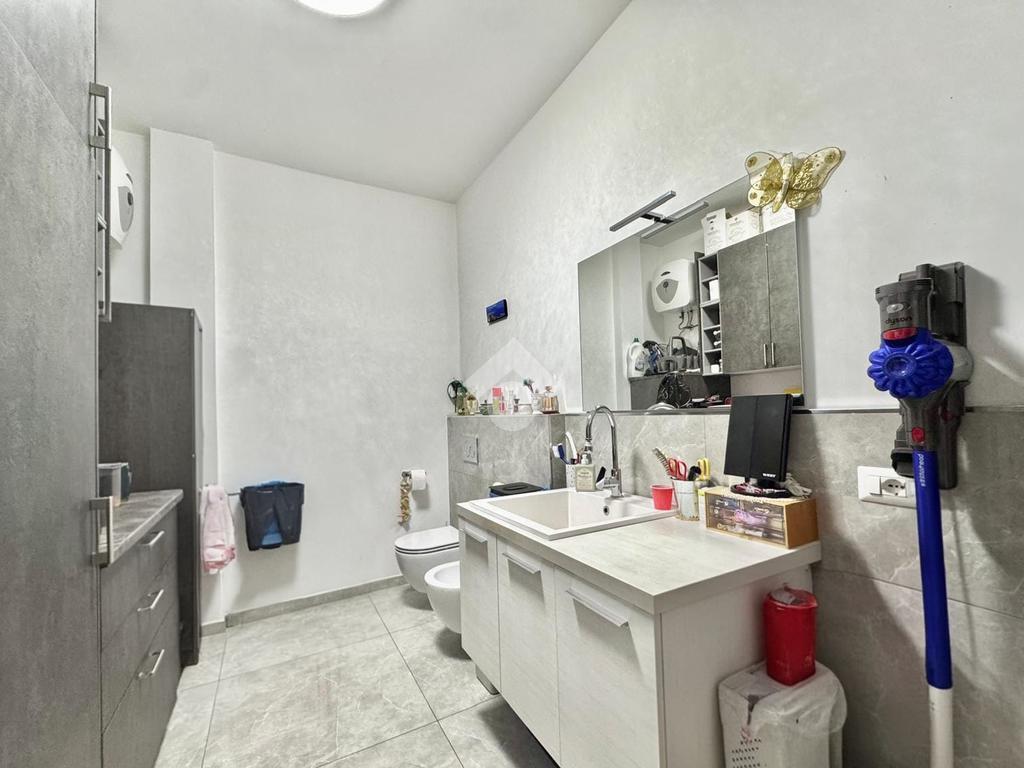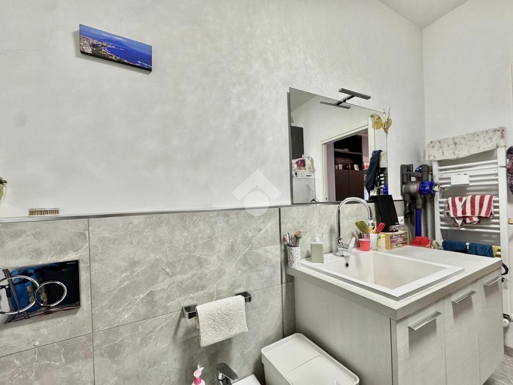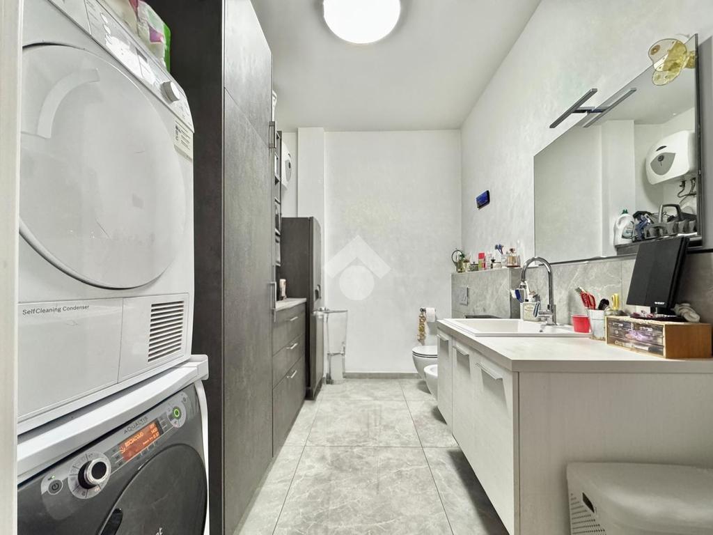 Dallo stesso disimpegno si accede a un bagno attualmente utilizzato anche come lavanderia, pratico e ben organizzato. Un secondo ambiente, oggi adibito a soggiorno, offre grande versatilità e può facilmente diventare una camera da letto, uno studio o una zona relax, anch’esso con affaccio sul balcone.