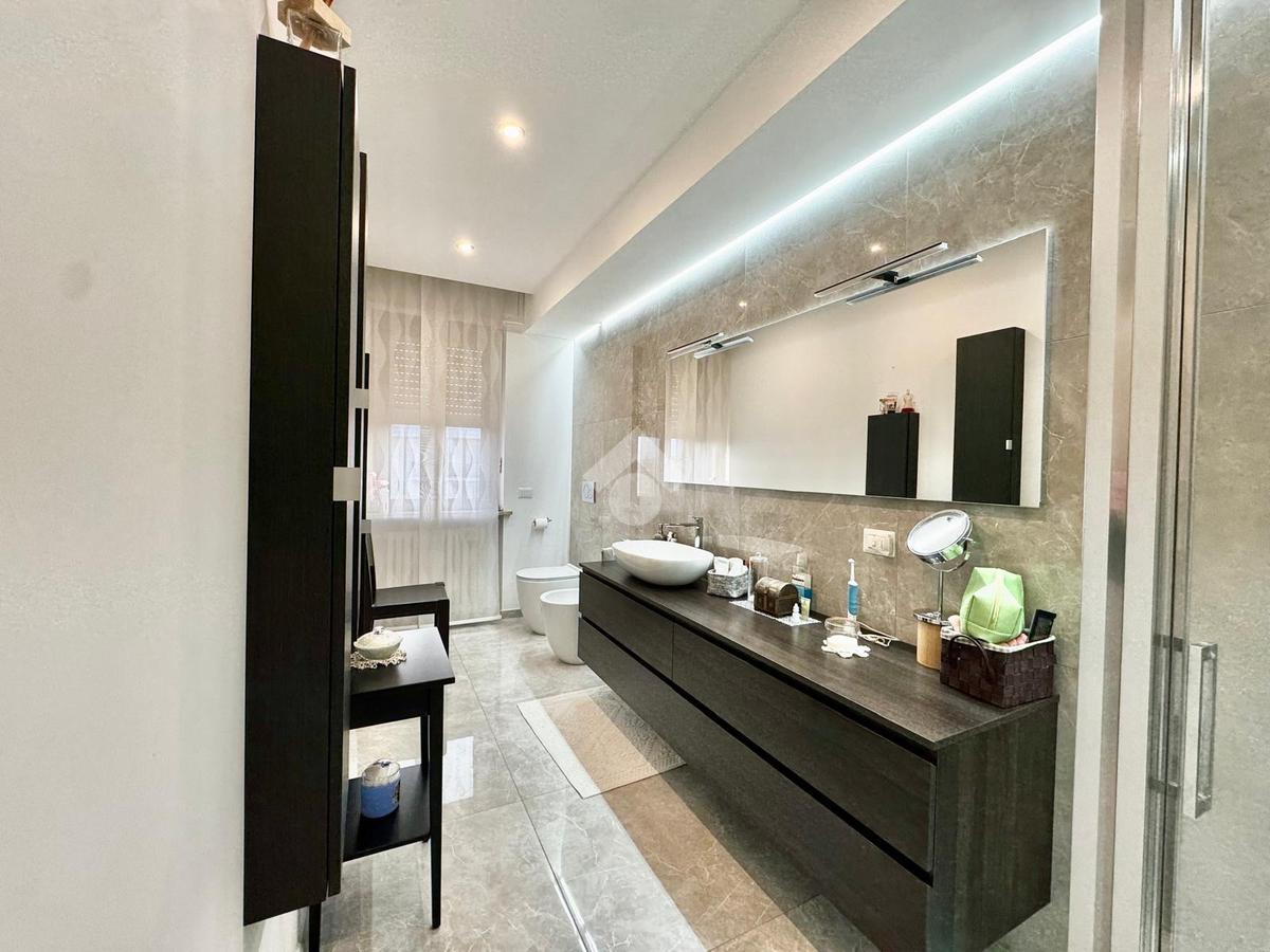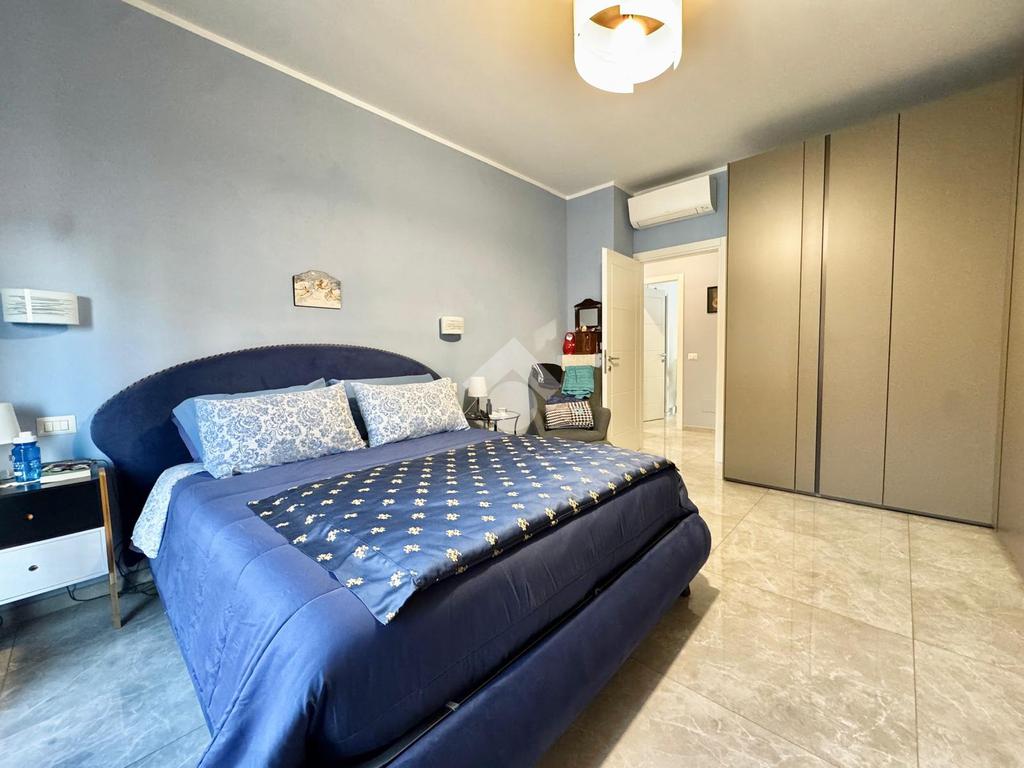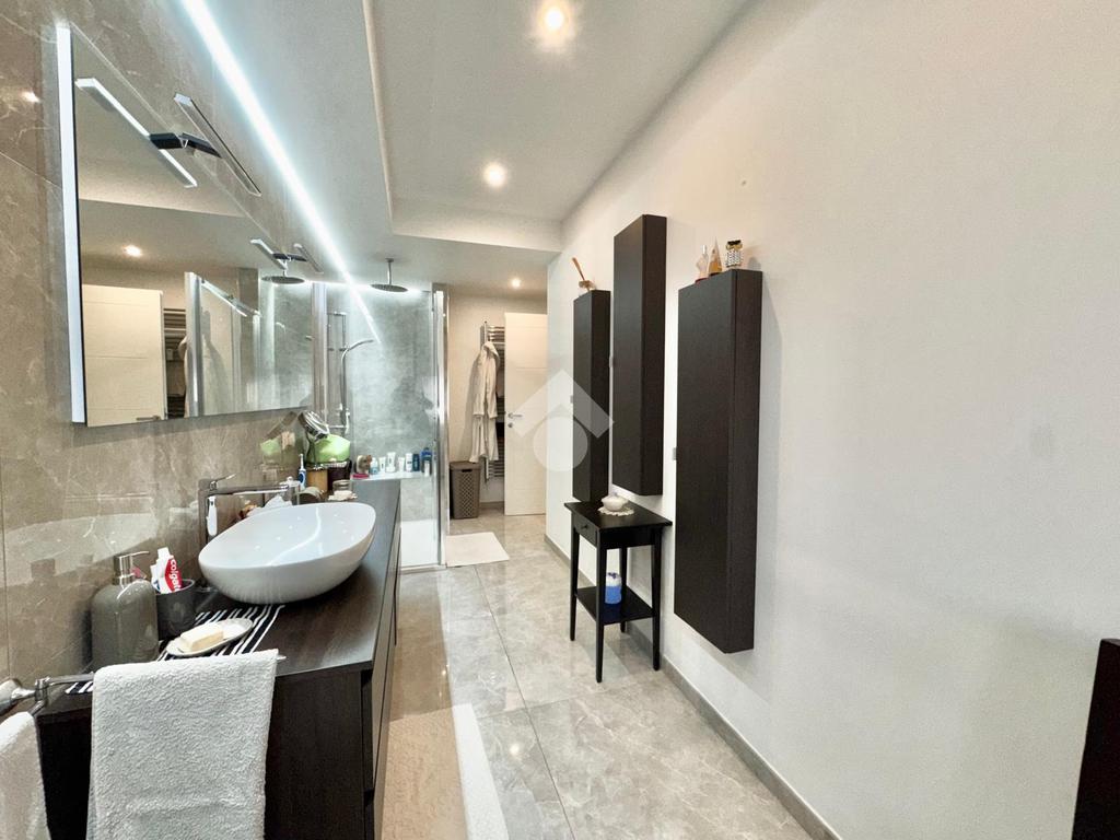 La zona notte, ben separata per garantire privacy e tranquillità, si sviluppa attraverso un ulteriore corridoio che conduce a una prima camera spaziosa e luminosa, seguita da una seconda camera di dimensioni ancora più generose, entrambe con accesso al balcone. Il bagno principale è finestrato e dotato di un ampio box doccia, rifinito con gusto e attenzione ai dettagli. Completa la zona notte una splendida camera con cabina armadio e bagno privato, un ambiente riservato e confortevole con affaccio sul balcone, pensato per offrire il massimo del benessere.