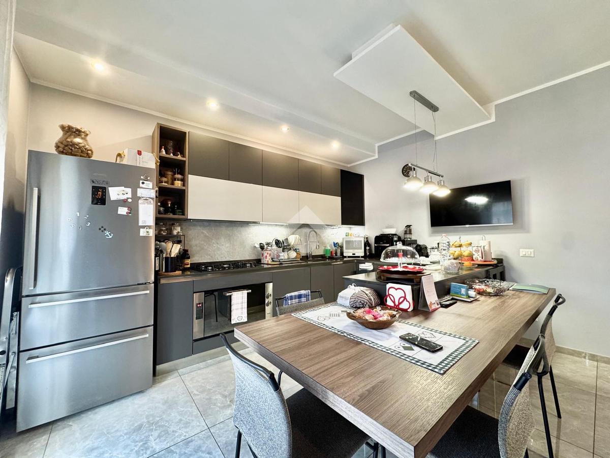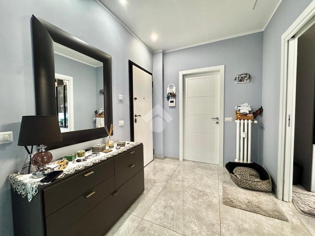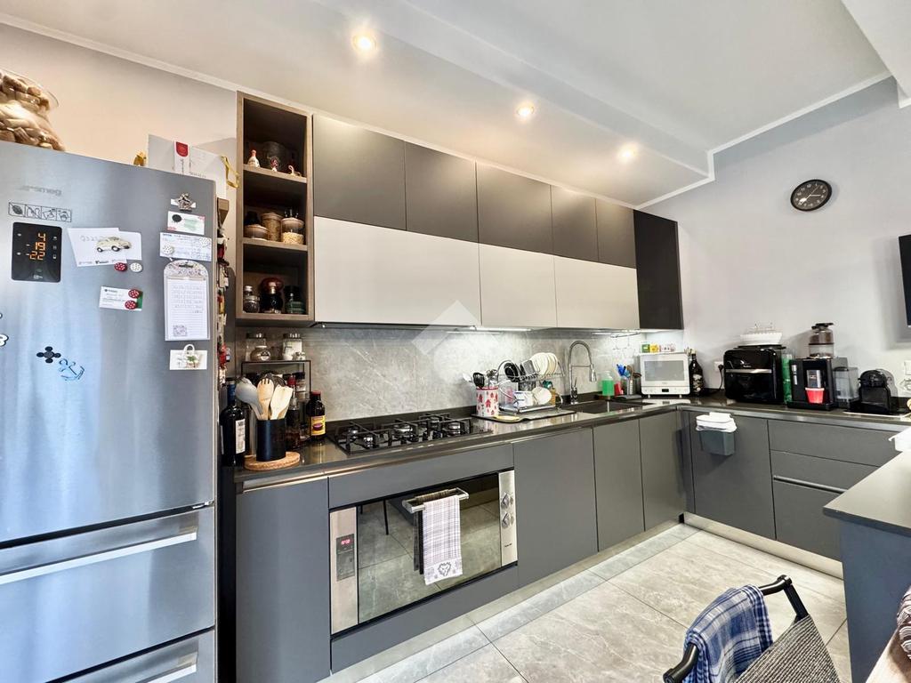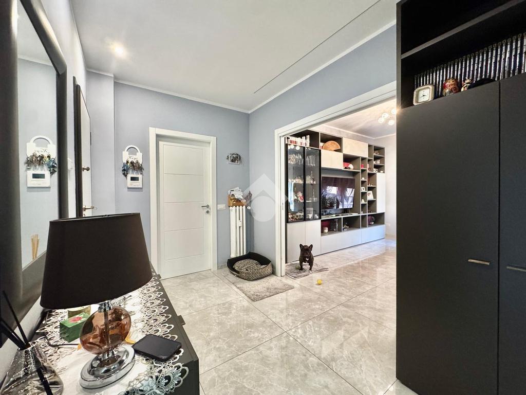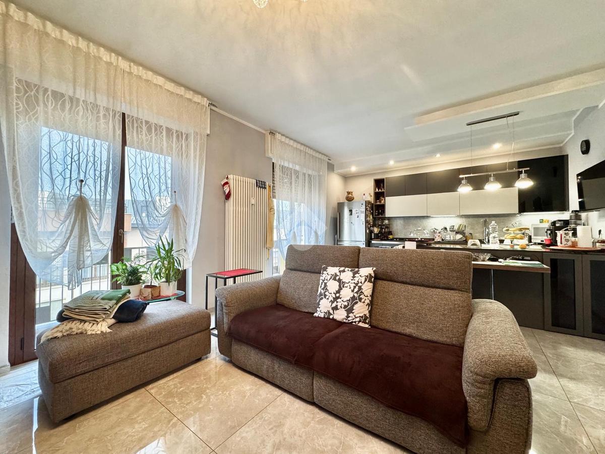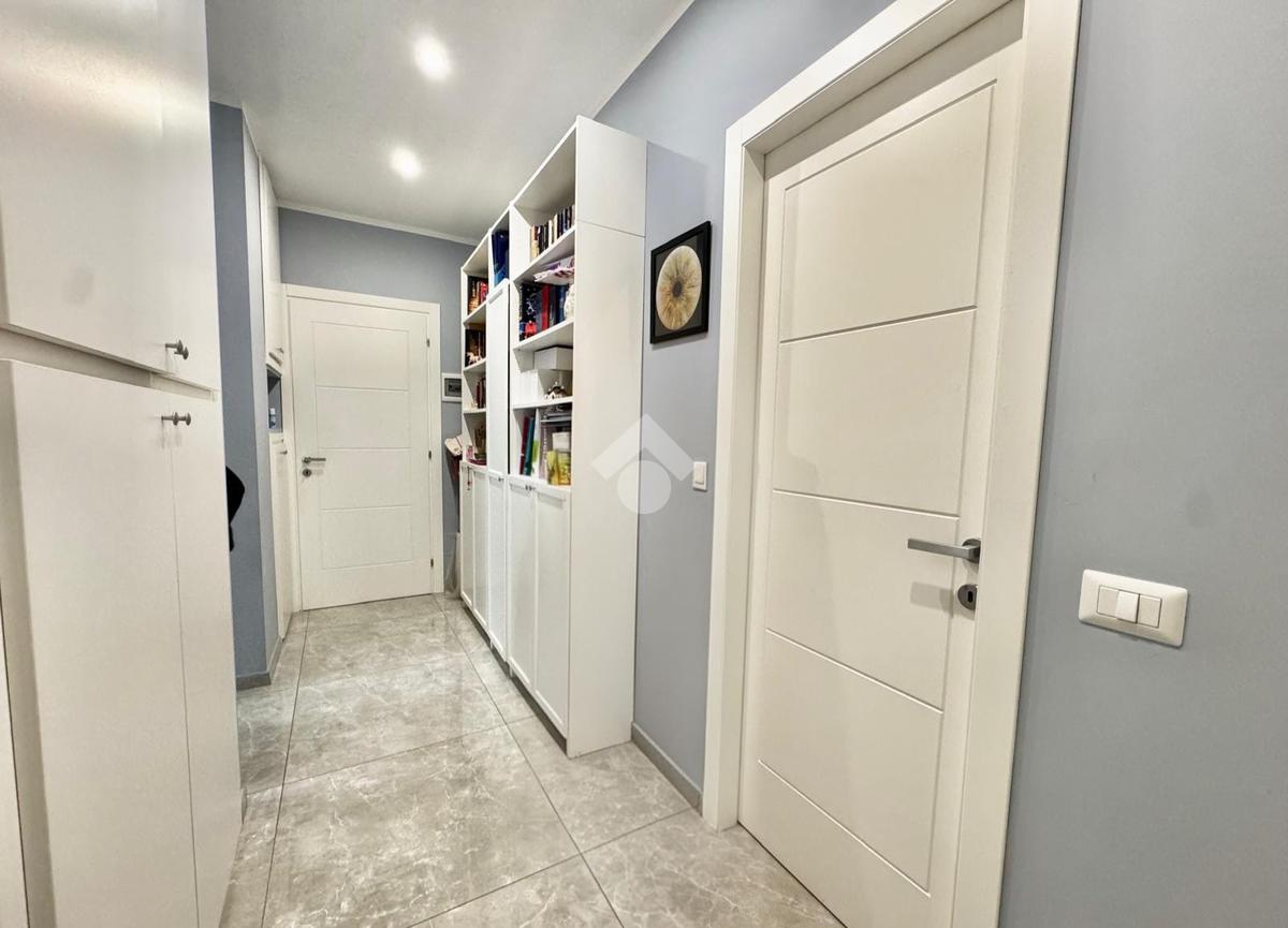 L’ingresso introduce a un accogliente disimpegno che accompagna verso il cuore della casa, dove il soggiorno si apre con eleganti porte scorrevoli creando un ambiente arioso e di grande respiro. La zona living, con cucina ampia e funzionale, è inondata di luce naturale grazie alle grandi aperture che affacciano sul balcone, regalando una piacevole continuità tra interno ed esterno e una sensazione di luminosità costante durante tutta la giornata.