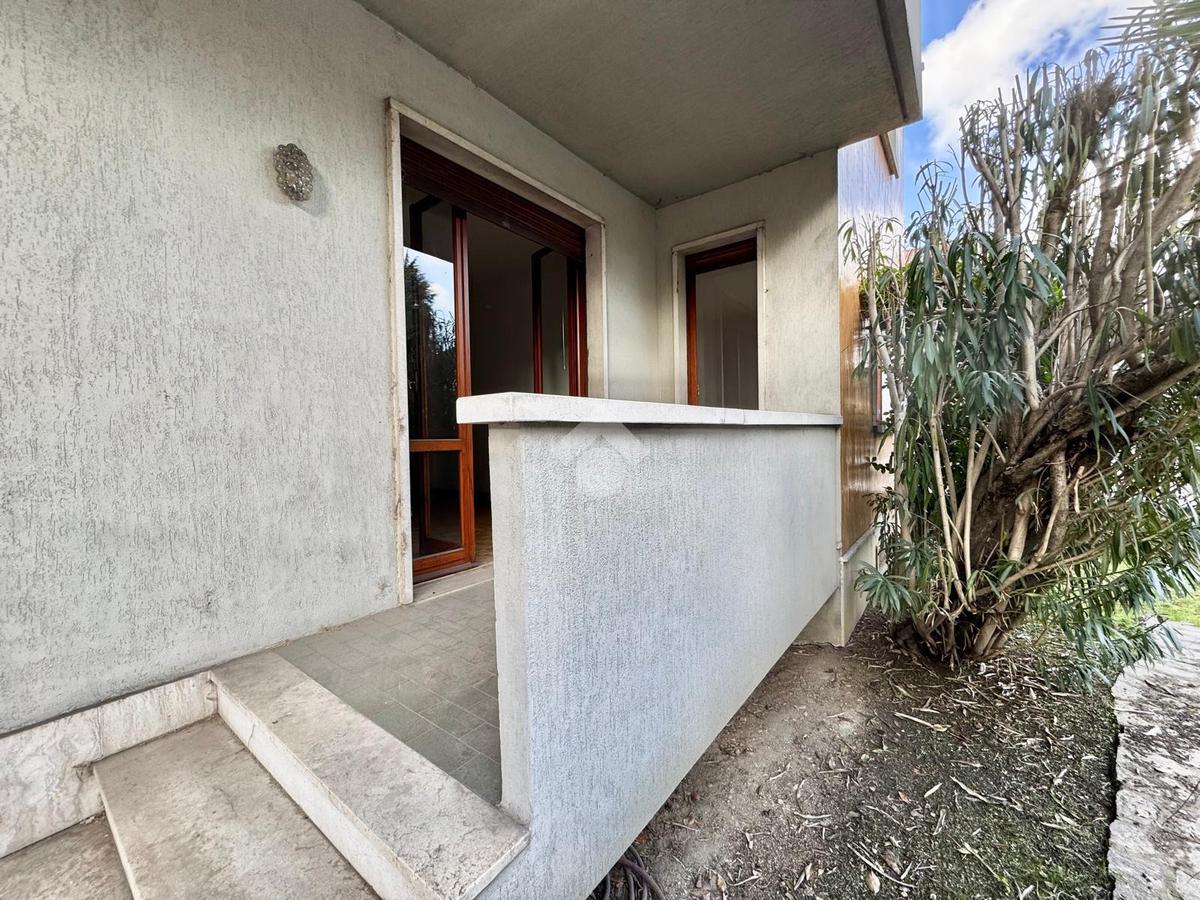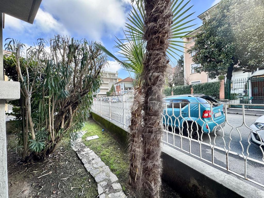 L’ingresso si apre sulla zona giorno e conduce, sulla destra, a un comodo disimpegno con ampio ripostiglio, una camera matrimoniale grande e luminosa con affaccio sul balcone, un bagno finestrato con vasca e una seconda camera anch’essa ampia, entrambe servite dallo stesso balcone che scende direttamente al giardino privato, perfetto per momenti di relax all’aperto.